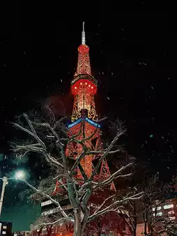 While wandering through snowy Sapporo at dusk, I came across the Sapporo TV Tower, standing calmly as city lights flickered softly around it. Its structure dusted with snow, glowing gently in the evening chill... it felt like time had paused for just a moment.