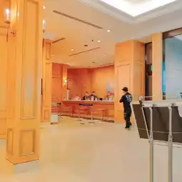 The lobby of HOTEL MYSTAYS PREMIER Sapporo Park has a very cute impression with circular sofas and a circular ripple-like pattern on the floor, but the colors are calming and it is the perfect space for a meeting.