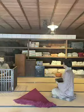 The first thing that caught my eye was an old fabric shop. Wax figures of the shopkeeper and a female assistant behind the counter seemed to be serving customers selecting fabrics. The wooden interior, neatly arranged textiles, and soft lighting vividly evoked the bustling atmosphere of the past.