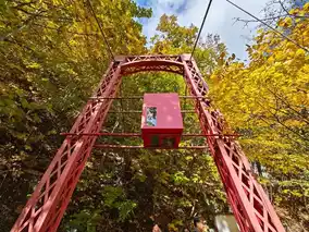 the bridge offered a view of the gorge on both sides, surrounded by vibrant maple leaves,