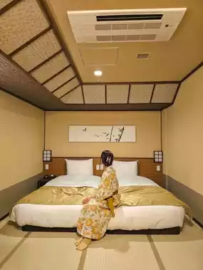 Beds are placed on tatami mats, so those who are uncomfortable sleeping on the floor can enjoy a ryokan stay without any worries. 🖤