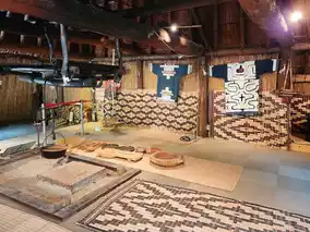 Inside, visitors can explore displays of traditional clothing, tools, crafts, and everyday items that tell the story of Ainu life and resilience. The center also features reconstructed houses and outdoor installations that bring ancient customs to life, allowing you to see how the Ainu lived in harmony with nature.