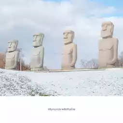 Within Makomanai Takino Cemetery, a popular photo spot is the Moai Statues, modeled after Easter Island. Standing in a vast field, they stand out against the Hokkaido landscape. They're a unique and solemn sight, making them a popular stop before or after visiting the Hill of the Buddha. On snowy days, the contrast between the gray rocks and the white ground is especially striking.