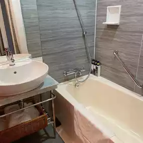 The room had a spacious desk area, and the bathtub was a rare size for Susukino, so you could enjoy a relaxing bath.