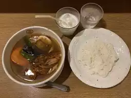 A gentle soup curry made with a lot of Hokkaido vegetables, a Sapporo specialty soup curry!