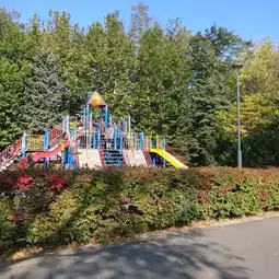 There are many trees near the playground equipment, and I think it will be even more beautiful once the leaves change color a little more!