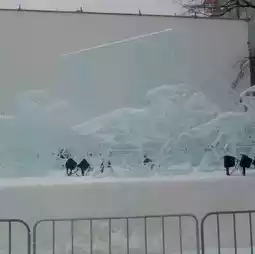 Sapporo gets a lot of snow in the winter. It really snows like crazy. If you just get off the main street, the snow piles up to the second floor of an apartment building. With this much snow, it doesn't seem like there's enough snow to hold a snow festival (Yukimatsuri).