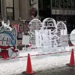 And as expected from Japan, not only do they make snow sculptures and ice sculptures, but they also have cosplayers come and pose in front of corporate promotional sculptures.