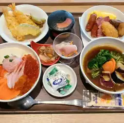 The hotel is stylish, but the breakfast is mostly Japanese food, and the seafood is served in small bowls, so you can eat it as is, or put it on rice to make a seafood bowl.