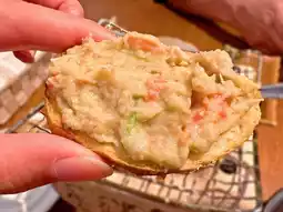 The crab paste is topped with a little fresh and sweet crab meat.