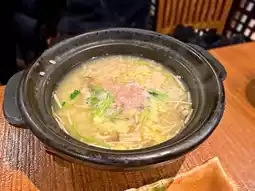 It is not as fluffy as the congee boiled in Hong Kong, more like soup rice.