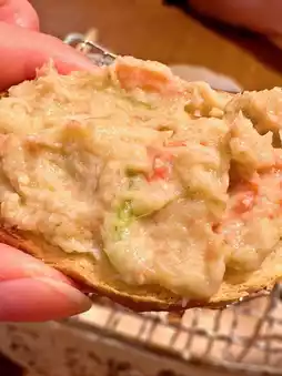 The whole piece of toast is covered with crab paste. It's so delicious!