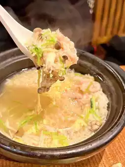 It is not as fluffy as the congee boiled in Hong Kong, more like soup rice.
