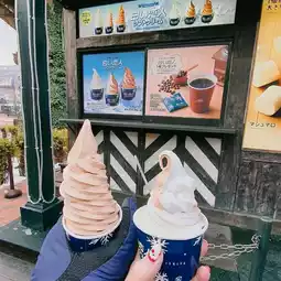 - Enjoy soft-serve chocolate, small cup 350¥, large cup 500¥