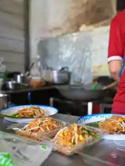 ⭐Pad Thai Pratu Wat Cheing Khao is another Pad Thai restaurant that many people love and spread the word about its deliciousness. The noodles are stir-fried to the perfect softness and chewiness, and tossed in a special Pad Thai sauce that's rich, fragrant, and balanced with a rich, sour, sweet, salty, and spicy flavor. It's a true Thai Pad Thai experience, complete with generous toppings, including large shrimp and other fresh ingredients. Every dish is packed with quality and care, making it a must-try Pad Thai dish if you're in the area.