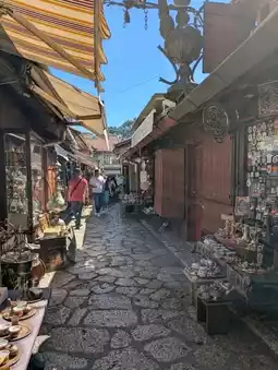 Indulge in Bosnian culture with lokum and rich coffee in Baščaršija, the lively Ottoman bazaar.