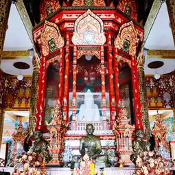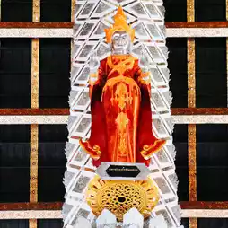 🙏The Mahavihara Boon Baramee, a silver metal sculpture, tells the story of 156 episodes of the life of the Buddha. The interior walls of the Mahavihara are decorated according to the Traibhum Phra Ruang belief and there is Luang Pho Phet Somprathan, 9 meters wide and 12.59 meters high, cast from brass and covered with real gold leaf.