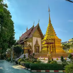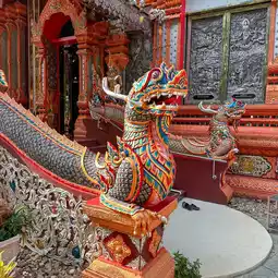 ðWat Sri Damul is located in Saraphi District, Chiang Mai. The temple is very spacious and has interesting decorations. There is a large chapel with glass decorations inside, making it look magnificent like a Buddhist castle. People also like to come here to get their face tattooed and walk around because there is a simulated waterfall around the temple. There are also food shops, resting areas, and restrooms.
