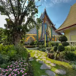 ðRecommended is the large chapel decorated with Lanna-style stucco and crystal glass.
