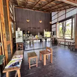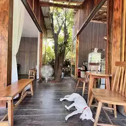 A small and cozy cafe in Saraphi District, Chiang Mai, decorated in a simple Japanese homey style, allowing natural light, cool breezes under large trees, and the faint sound of passing trains, making it one of the favorite hideaways for many people.