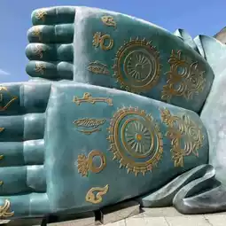 🌸🌸The world's largest bronze reclining Buddha, which we may see as ordinary because our country's Buddha is much bigger. But don't forget that this is bronze, not stucco like in our country. This Buddha was just built in 1995. There is a gold pattern carved on the sole of the Buddha's foot. People come to pay homage to the Buddha's feet.