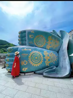 The soles of the Buddha's feet are decorated with patterns, and you can touch the Buddha's feet and pray👣