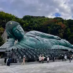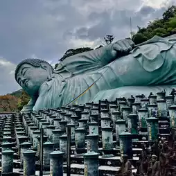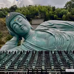 #100TravelTips Today, I traveled to Nanzoin Temple in Fukuoka Prefecture, Kyushu Region, Japan. I left Hakata Station by JR with the temperature around 8 degrees Celsius during the autumn foliage season in November. Along the way up to the temple, the red maple leaves were beautifully blown by the gentle breeze. This temple enshrines the relics of the Buddha brought from Burma. The abbot built a reclining Buddha statue in accordance with the customs of Burma. Normally, in Japan, Buddha statues are built in a meditating posture. It is rumored that the abbot won the lottery many times at this temple and used the money to build this beautiful temple. #fukuokajapan #NanzoinTemple #PathOfLight #Fukuoka