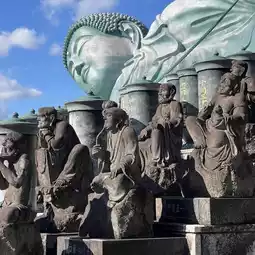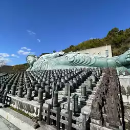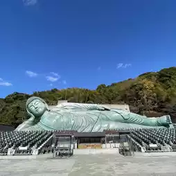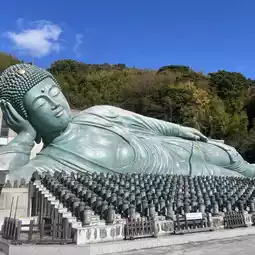 Nanzoin Temple (南蔵院) has the largest bronze Buddha statue in Japan, or maybe the world. There are many other statues and Buddhas in the temple, but what makes this temple the most famous is that it is the starting point of the famous pilgrimage route of Kyushu Island. This reclining Buddha is 41 meters long, 11 meters high, and weighs 300 tons. It has the same architectural style as the Great Buddha statues in Nara and Kamakura. It was built in 1995. Generally, Buddha statues in Japan are usually seated, but this Buddha statue is reclining. Nanzoin Temple has donated money to help monks in Burma many times, so in return, they sent relics back. Nanzoin Temple built a reclining Buddha statue that is popular in Burma to store it. It is also said that the money used to build it came from the abbot who won the lottery many times! #nanzoin #fukuoka #travel