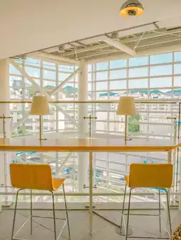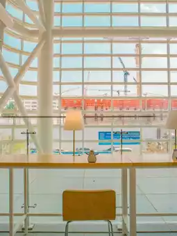 is a space filled with sunshine ☀️ pouring in through the large glass windows,