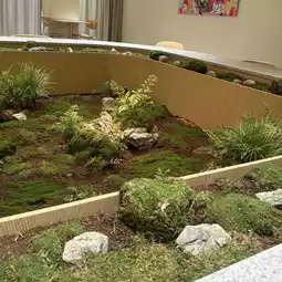 The interior has a natural feel, and I really liked the large counter-style seating in the center! 🌱