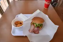 The set I received consisted of a hamburger, chicken nuggets, and cola... The chicken nuggets were so salty that I had to keep drinking the cola, and the burger didn't look bad, but the patty was so flimsy that I was embarrassed. Hmm... I wondered if it would be different if I ate at the main store in downtown Sasebo, and anyway, I want to say that if you come to Huis Ten Bosch, you don't have to eat a burger.