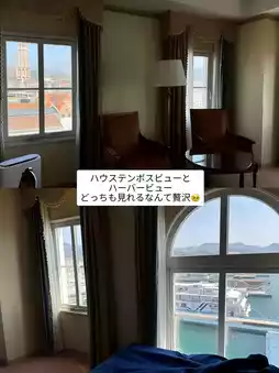 🏨Hotel Den Haag (formerly Watermark Hotel Nagasaki / Huis Ten Bosch) 🛏️Deluxe Harbor View Corner Room Harbor View💰Depending on the season, it's around 10,000 yen per person🙌⏰Check-in 15:00-23:00Check-out 11:00Number of rooms 228