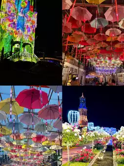 Huis Ten Bosch's Umbrella Sky is decorated with about 700 colorful umbrellas overhead.