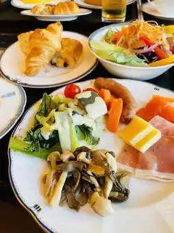 I went to Hotel Europe, the top-class hotel in Huis Ten Bosch. For breakfast, you can choose from the buffet at the open-air tea lounge "Anchors Lounge" or "Kissuitei" where you can enjoy Japanese meals. This time I chose the buffet. In addition to the live kitchen omelettes and special breakfast, you can enjoy Hotel Europe's original sparkling wine as an "eye opener" to wake you up in the morning. There is also a non-alcoholic drink to enjoy the atmosphere.