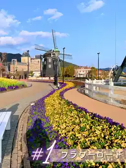 Around March, tulips are planted, and you can see windmills among the tulips!
