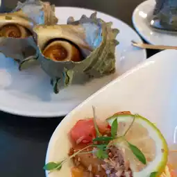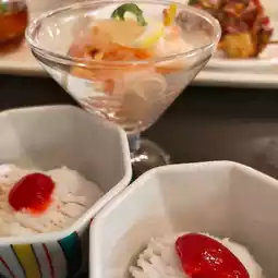 There were many dishes on the menu that would give you energy to endure the summer heat, such as turban shells, parboiled conger eel, Japanese-style carpaccio with bonito and orange, kebab-style skewered lamb, and watermelon cake. ((´^ω^))