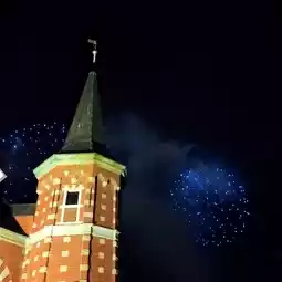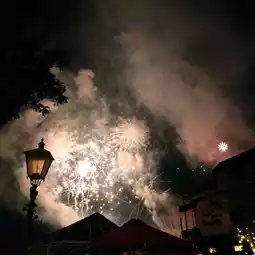 The fireworks are launched from the lively Harbor Town on the bayside.