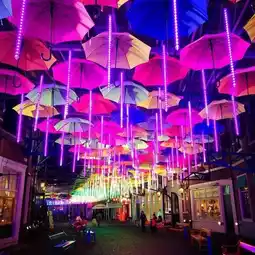 The scenery of Huis Ten Bosch after dusk is another kind of charm, making people irresistible in the colorful world... Especially the Umbrella Street and the Dutch Windmill Garden after dark