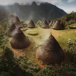 It is an interesting traditional village high up in the mountains. Takes quite some effort to get there from Labuan Bajo, with a long, very bumpy ride on the road, a scooter taxi ride from Denge, then a 5 kilometres mostly uphill hike in the forest. When you arrive there you are rewarded with a stunning view of seven, traditional houses.