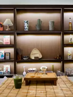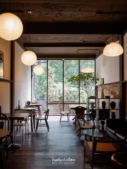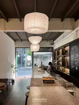 #NewYearNewTrip HOMU, a new home in Sala Daeng area, with a warm atmosphere like a small Japanese cafe, located in a single-storey shophouse in a small alley, but decorated perfectly. The main color is wood, and Japanese lamps are added, giving a simple but charming feeling.