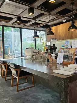 This morning, I stopped by Ground Coffee Sathorn and I have to say, it was absolutely amazing! ☕️✨ The cafe's atmosphere is lofty and industrial, with a cool, raw vibe, but also lush with a garden and pond, creating a calm and relaxing atmosphere. 🌿💦 They truly focus on specialty coffee. Their coffee is carefully crafted and tastes excellent. They offer both medium roast (Lighter Blend) and dark roast (Stronger Blend) beans, perfect for coffee lovers! If you're not a coffee drinker, there are also other menus like tea, cold-pressed juices, all-day breakfast, and a wide selection of pastries. 🥐🍳🍰 Sipping a warm cup of coffee while the morning sunlight streams through the large windows is the perfect way to start your day. Anyone in the Sathorn 11 area must try this! 🥰📍Location: Sathorn Soi 11, near BTS Saint Louis. Parking is also available. 🚗💨
