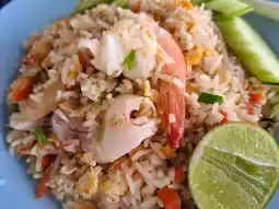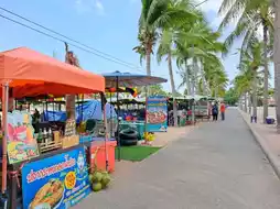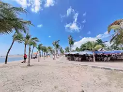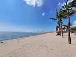 Ban Amphur Beach is located in Sattahip District, Chonburi Province. It is a small beach with few people. It is most convenient if you have your own car. It is about half an hour's drive from Pattaya. There is a large parking lot. You can bring your own seats, food and drinks, or you can use the services of the locals on the beach. The prices are not as high as Pattaya Beach or Jomtien Beach. We ate at Pa Daeng's restaurant. The seafood was fresh and delicious. My parents really liked it. Pa Daeng was lovely and friendly.
