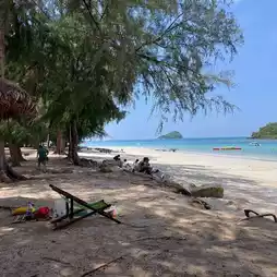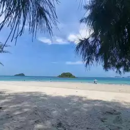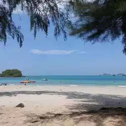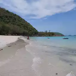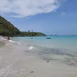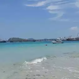 White sand, clear water, clean, and safe. The beach is located near Chuk Samet Pier in Sattahip District, Chonburi Province. 🌴🌴🌴