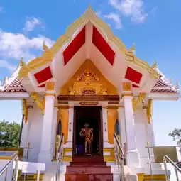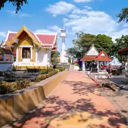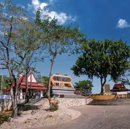 The Shrine of Prince of Chumphon Khet Udomsak, Laem Pu Chao is located on Khao Laem Pu Chao, at the southernmost point of the curve of Ao Toey Ngam. It was built in 1960. Inside the shrine, there is a statue and a box to store his remains. On top, there is a viewpoint at Khao Laem Pu Chao, where you can see Ao Sattahip, Ao Toey Ngam, Koh Phra, Koh Tao Mo, and the Gulf of Thailand.