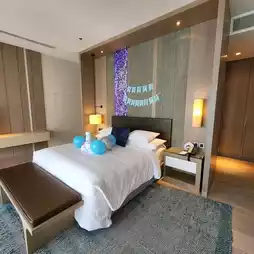 2nd floor: It is a bedroom with a wide King Size bed, a sofa, a large walk-in closet area with a dressing table and a balcony where you can stand and see the sea and the surrounding area of the hotel.