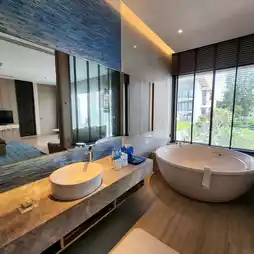 🏨 Facility: There are 3 swimming pool zones. The adult pool is next to the sea. The middle pool is not very deep, children can swim in. And there is a fountain and playground zone for children. There is a Kids club near the 609 Kitchen restaurant, spa uses Harnn products.