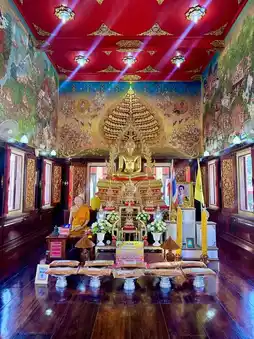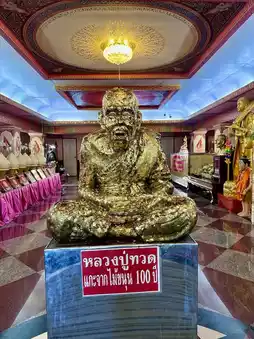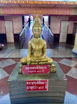 It is an old temple in Tambon Samet San, built during the reign of King Chulalongkorn. It has been revered by the people of Chong Samet San for a long time. It is said that if anyone wants to ask for a blessing to be successful in their career, enhance their destiny, receive merit, and be prosperous and wash away all bad luck, they must go under the famous Rahu Church. After going under the Rahu Church, don't forget to whisper at the rat statue. It is believed that the rat will take the message to Ganesha to make the wish come true. When whispering, don't forget to cover the other ear of the rat because it is believed that the message will not go out the other ear, as the proverb says, "In one ear and out the other ear."