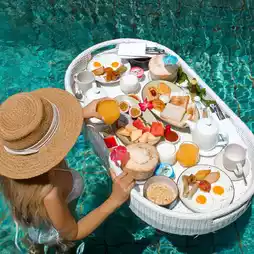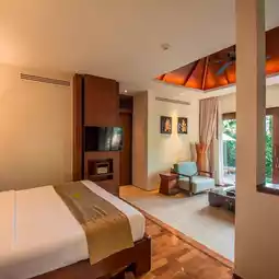 Come here, prepare beautiful clothes. When you arrive tired, order an Afternoon tea set to eat. We stayed at the Pool Villa Suite with a private swimming pool decorated in Balinese style, very well divided, fully equipped with facilities. Here, there are many types of rooms to choose from. You can choose to stay. Easy to travel, not far from Bangkok. You will not be disappointed. #Good atmosphere accommodation