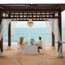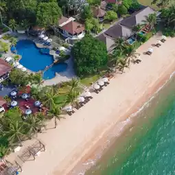 #Pattaya Travel This is not an island, but a beachfront resort in Balinese style, very romantic atmosphere, Pattaya, Na Jomtien, Sea Sand Sun Resort & Villas, I fell in love with this place because the view is very beautiful with the villa accommodation on the private beach, quiet, surrounded by fresh nature, very suitable for relaxation. In the evening, watching the sunset is very beautiful. There is also a communal swimming pool, restaurant, spa on the beach.
