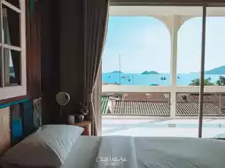 Boutique guesthouse & hostel with a chic atmosphere hidden in Sattahip city. The owner of the accommodation has beautifully decorated an old building. The rooms here are both dormitory and private rooms. Adi chose to book the Ton Ruea room, a room with a private balcony facing the sea, allowing you to sit and relax with a drink while looking at the sea view from your room. The atmosphere is so awesome.